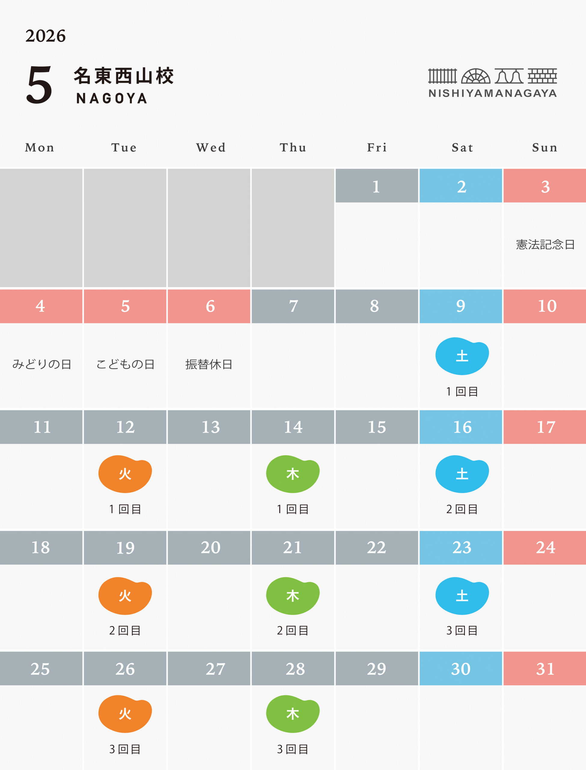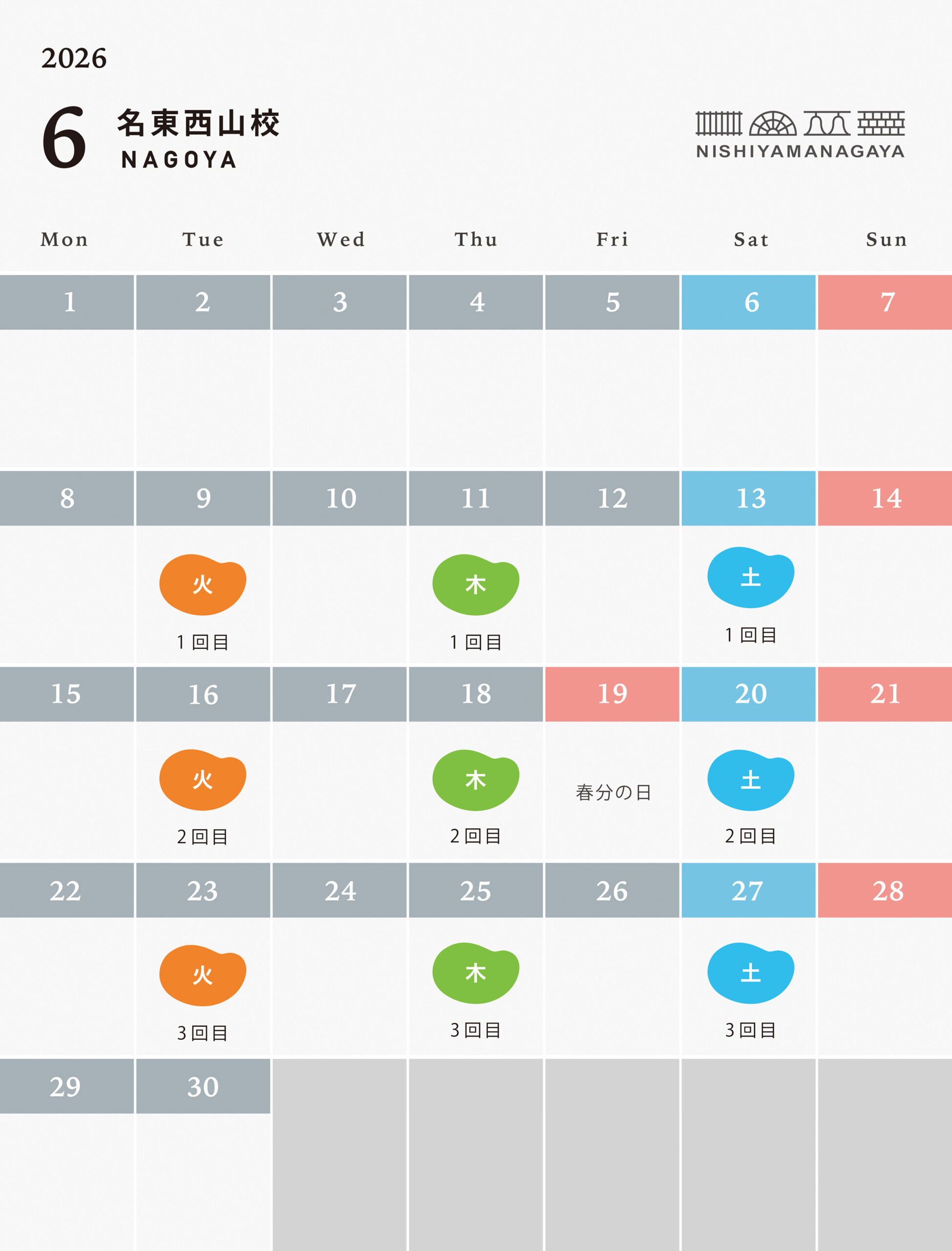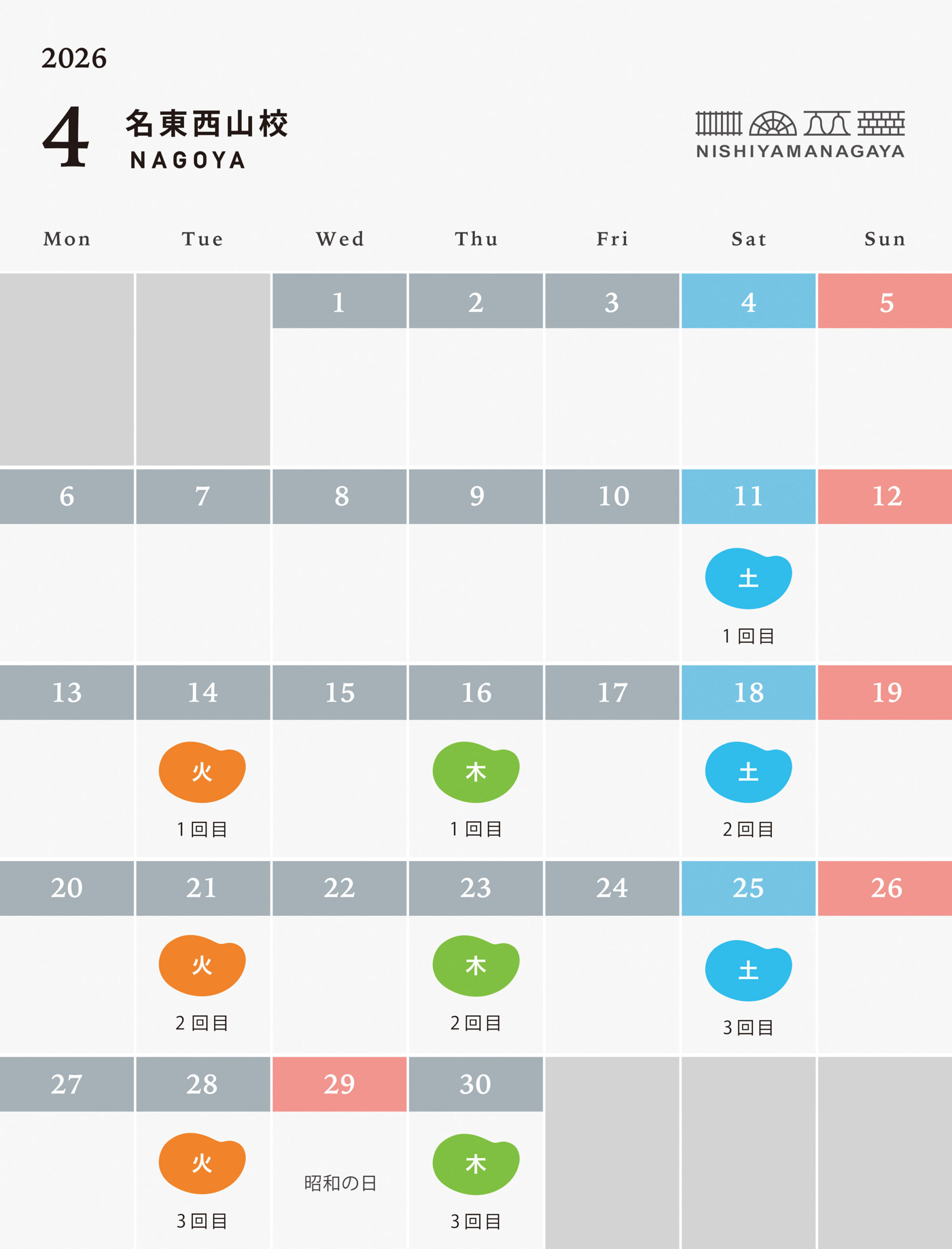 また、月に1回のみ開催日程の中からお休みの授業分を振替えて受講できるようにしています。ただし振替の授業の場合は、他の生徒と違う課題になる可能性もありますのでご了承ください。またなるべく指定した授業日にご参加していただけるようよろしくお願い致します。