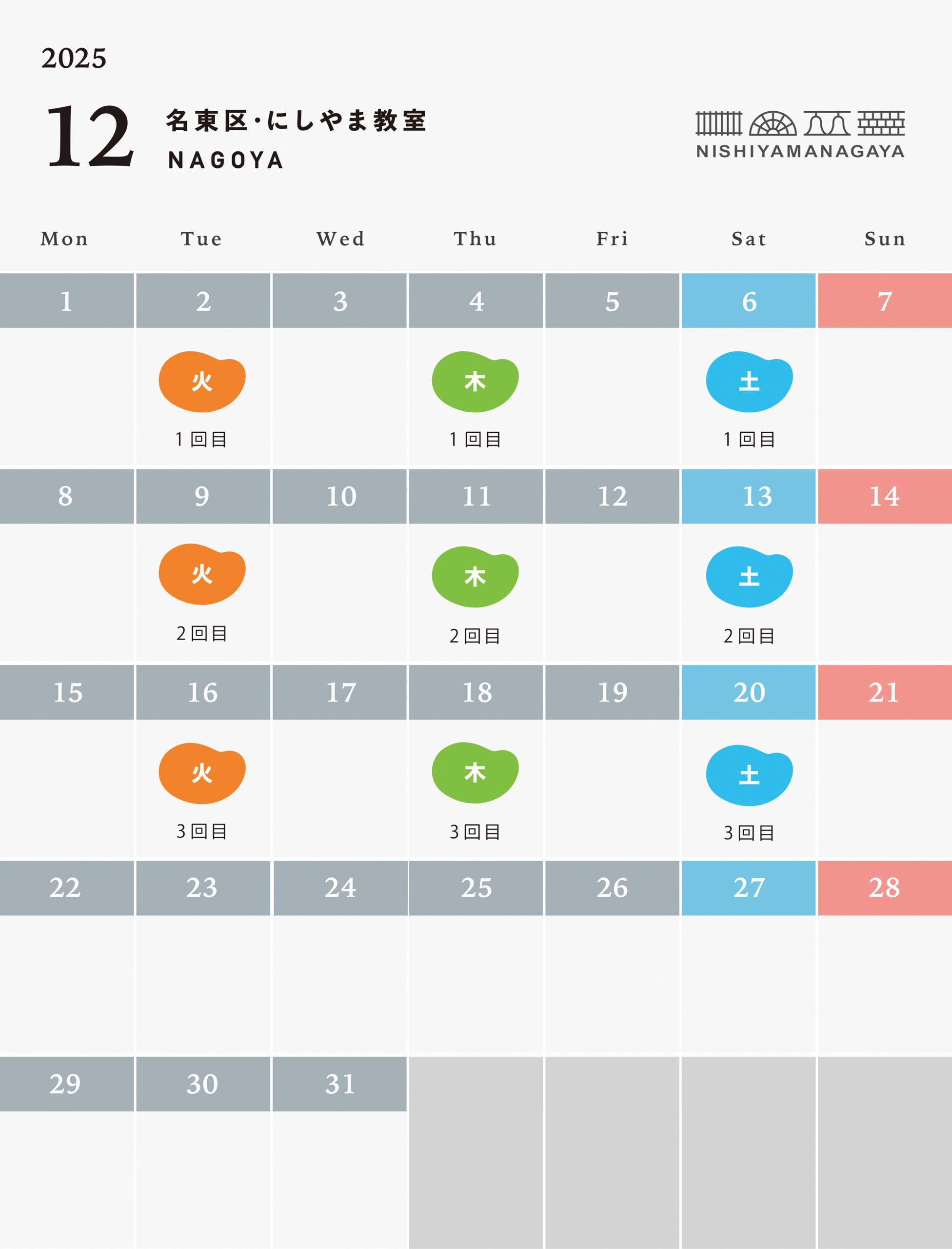 また、月に1回のみ開催日程の中からお休みの授業分を振替えて受講できるようにしています。ただし振替の授業の場合は、他の生徒と違う課題になる可能性もありますのでご了承ください。またなるべく指定した授業日にご参加していただけるようよろしくお願い致します。